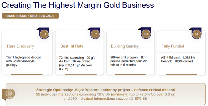 Mit jeder weiteren Meldung verdichtet sich das Bild eines Unternehmens, das zur richtigen Zeit mit den richtigen Assets positioniert ist. Die Kombination aus geopolitisch hochrelevantem Antimon, außergewöhnlich hochgradigen Bohrergebnissen und klarer politischer Rückendeckung verleiht insbesondere dem Sunday-Creek-Projekt eine Dimension, die weit über klassische Goldexploration hinausgeht.