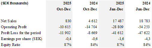 Lund, Sweden - Clinical Laserthermia Systems AB (publ) ("CLS" or the "Company") today publishes its Year-end report for January - December 2025.