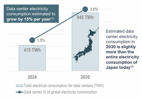 Grafik: Erwarteter Anstieg der Energienachfrage von KI-Datenzentren bis 2030