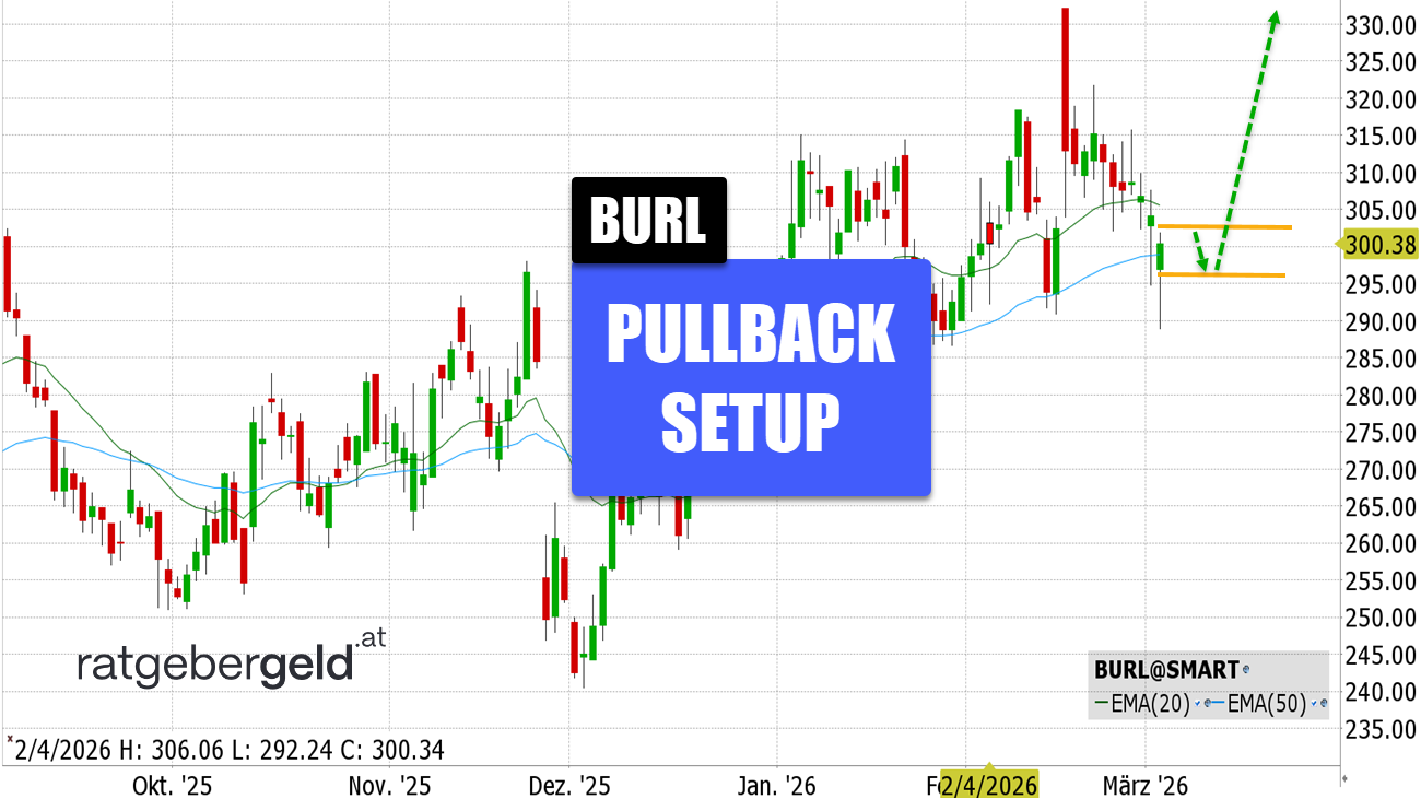 Markenbekleidung zu Schnäppchenpreisen! Burlington-Aktie mit Pullback-Setup am 50er-EMA!