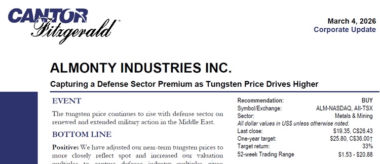 Die veränderte Marktdynamik bleibt auch an den Kapitalmärkten nicht unbemerkt. Analysten sehen in der aktuellen Wolframknappheit einen strukturellen Trend und haben zuletzt ihre Erwartungen für Almonty deutlich angehoben.