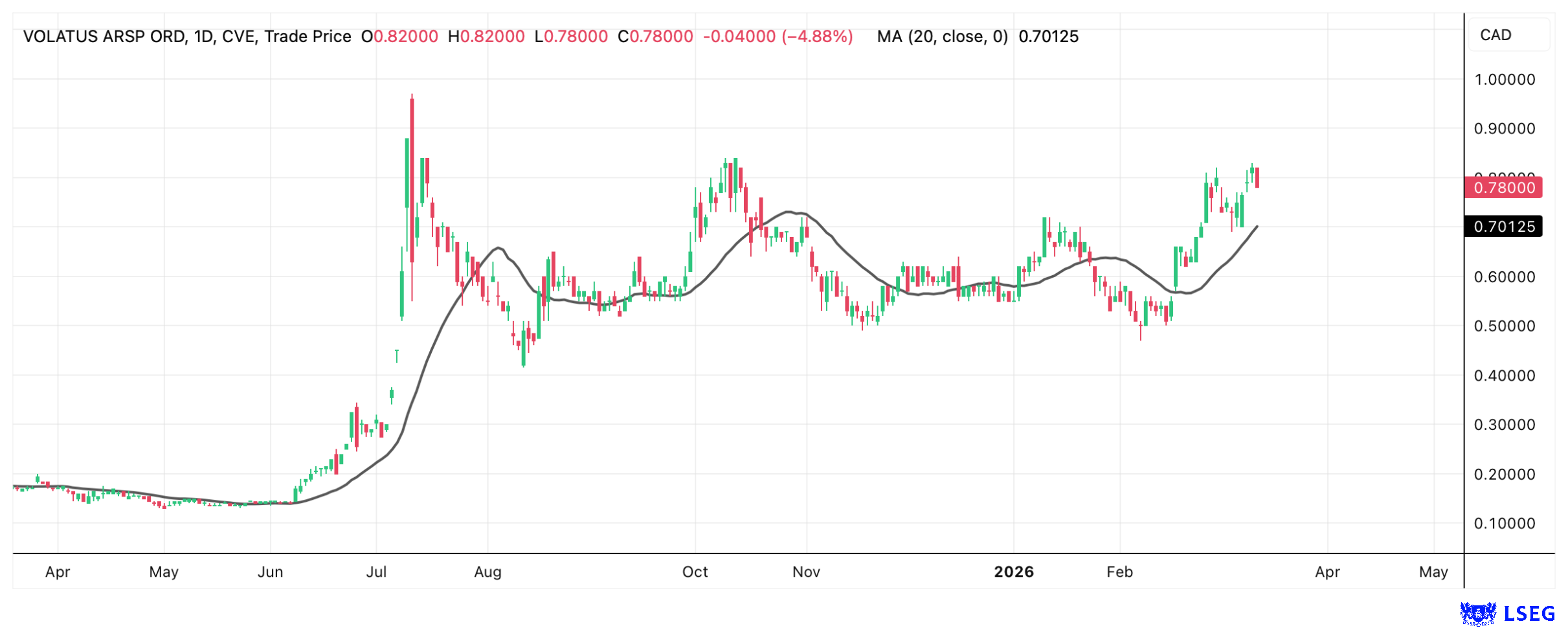 Quelle: LSEG-Refinitiv, 1 Jahres-Kerzenchart Volatus Aerospace