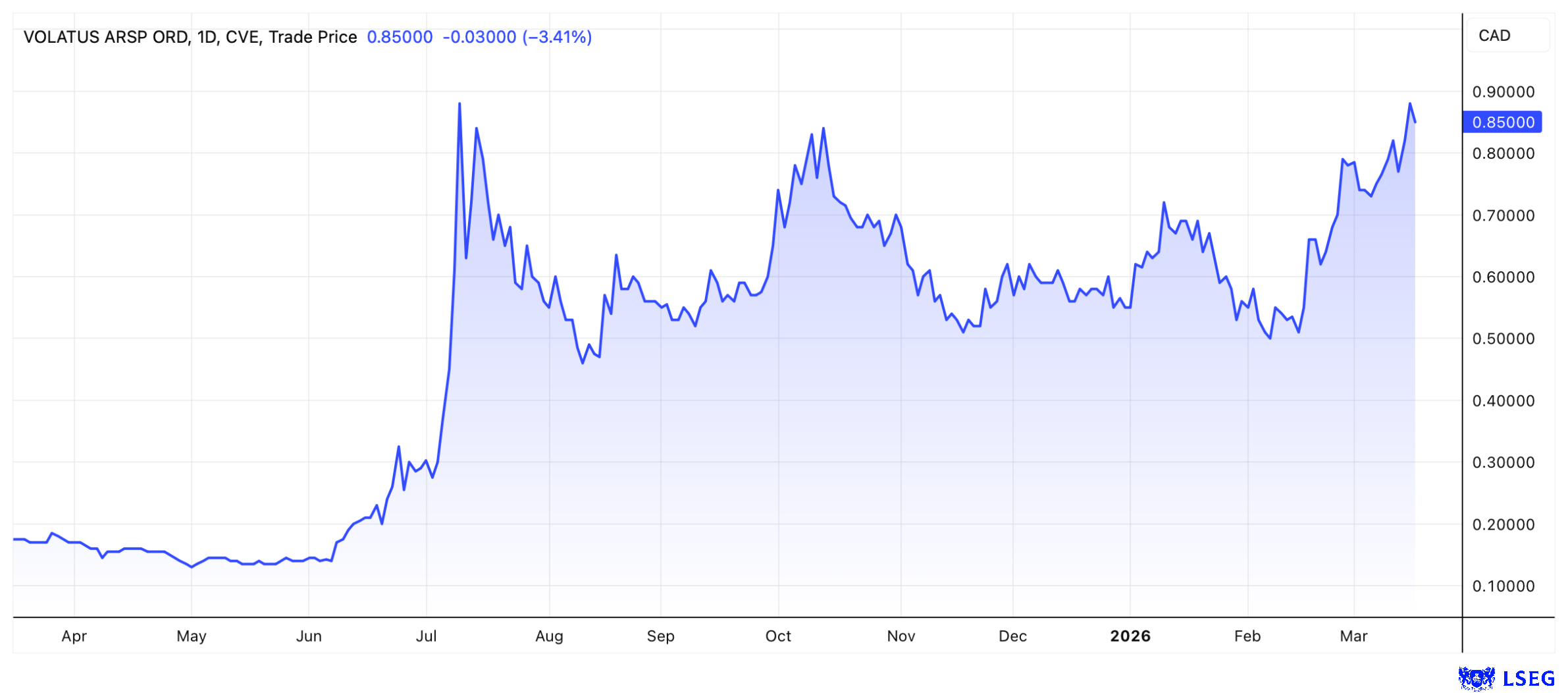 Wann bricht die Volatus-Aktie nach oben aus? Quelle: LSEG