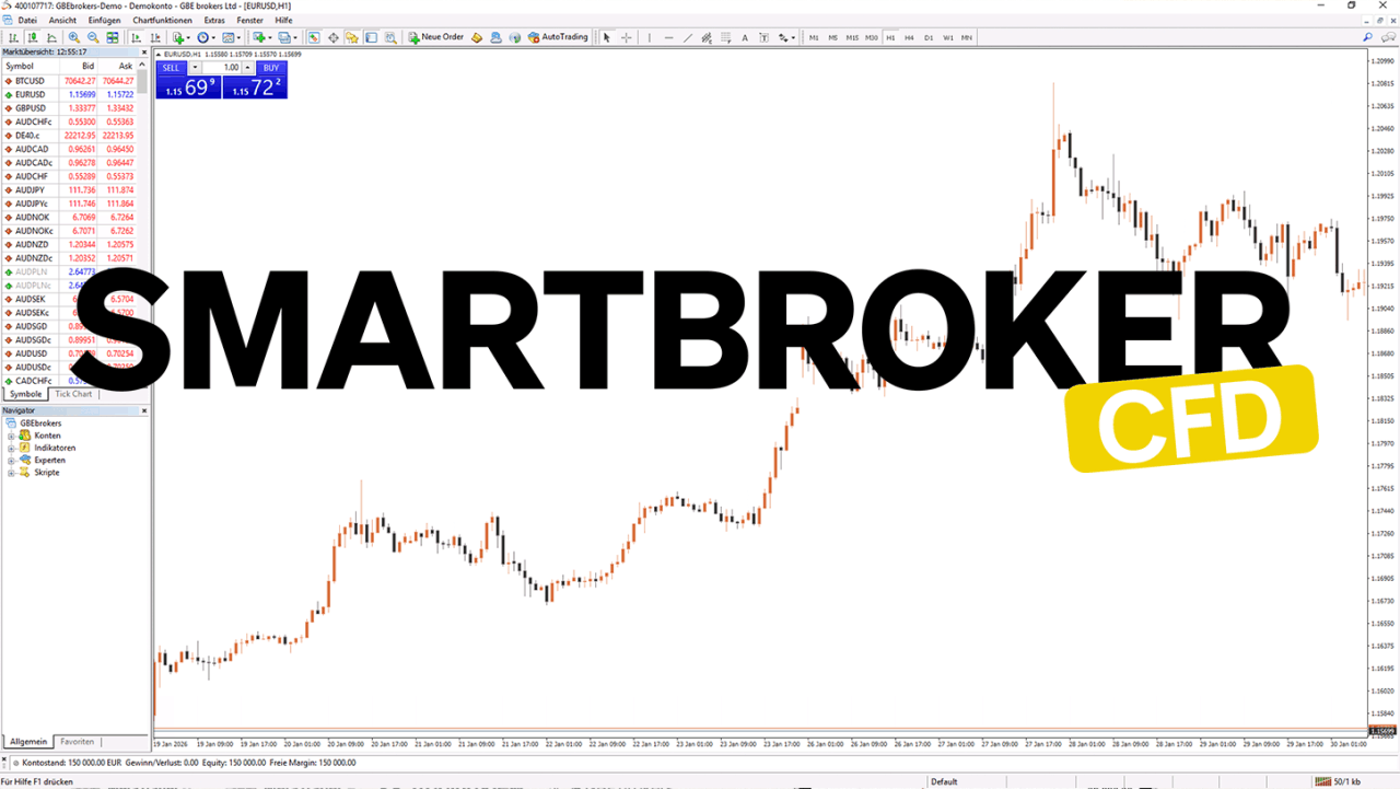 Smartbroker-CFD ist ein smarter CFD-Broker, das sich voll und ganz auf den CFD Handel konzentriert. Über Plattformen wie MetaTrader und TradingView erhalten Trader den Zugang zu einer Vielzahl von Märkten, egal ob Anfänger oder Fortgeschrittene. Was Smartbroker-CFD von vielen Konkurrenten abhebt, ist die Verbindung aus deutschem Standort, starke Handelsplattformen und einer klaren und smarten Gebührenstruktur.