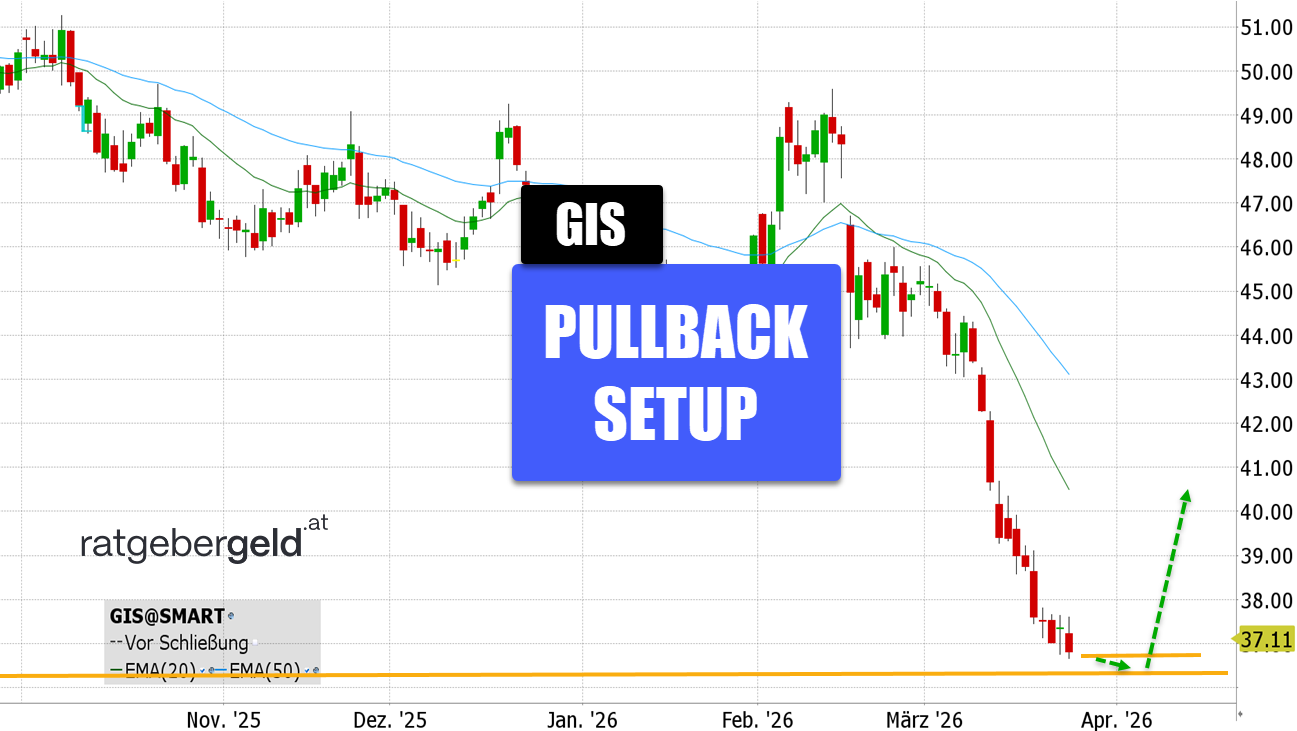 General Mills liefert fundamental ein schwaches Bild: Der Nettogewinn bricht um 48 Prozent gegenüber dem Vorjahr ein und auch das operative Ergebnis fällt deutlich, während der Umsatz um 7 Prozent sinkt, wenn auch leicht über den Erwartungen liegt. Hauptproblem ist das Konsumverhalten, da preissensible Kunden zunehmend zu günstigeren Alternativen greifen, was Margen belastet und Rabatte erzwingt. Der Lebensmittelhersteller versucht gegenzusteuern mit Preisanpassungen, Marketing und Innovationen. Erste Erfolge zeigen sich bei Marktanteilen und im Petfood-Bereich mit einem Wachstum von 11 Prozent, dennoch bleibt die Gesamtlage angespannt, da steigende Kosten, schwache Nachfrage und struktureller Druck auf das Kerngeschäft die Entwicklung bremsen. Es lohnt aber ein Blick auf den langfristigen Chart, der zeigt, dass hier eine überverkaufte Situation vorliegen und es auch eine Chance in Long-Richtung geben könnte. Die hohe Dividendenrendite 2025/26e von 6.57 Prozent könnte für Dividendenjäger durchaus interessant sein.