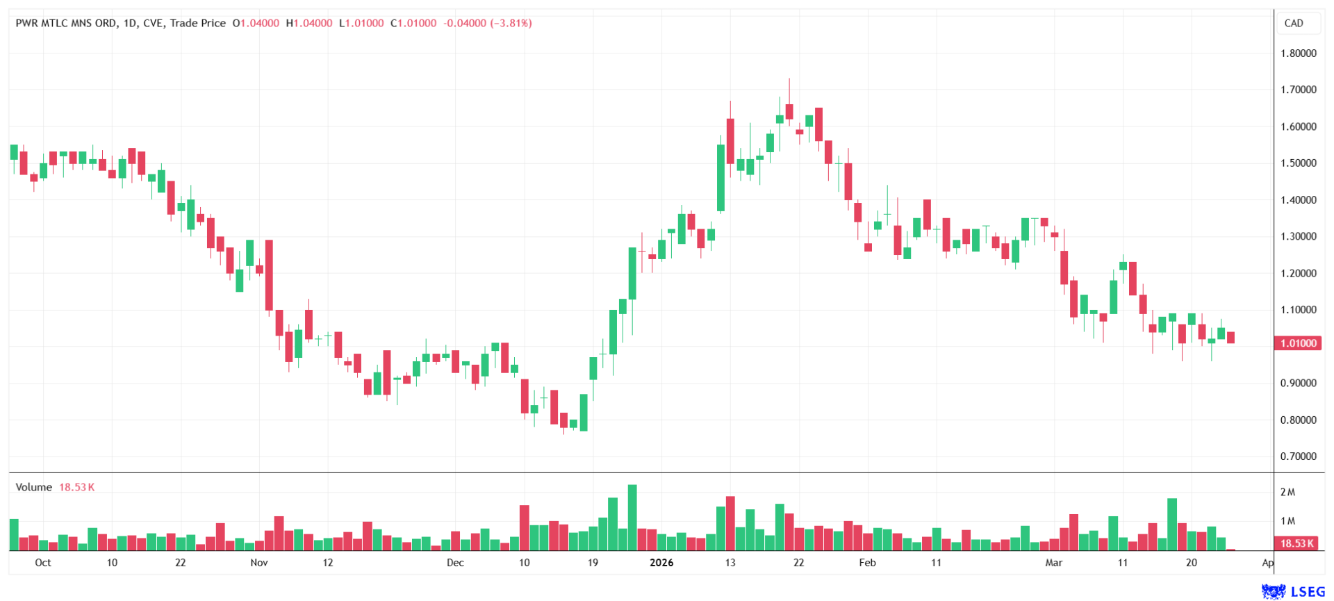 Chart Power Metallic Mines, Stand 26.03.2026, Quelle: LSEG