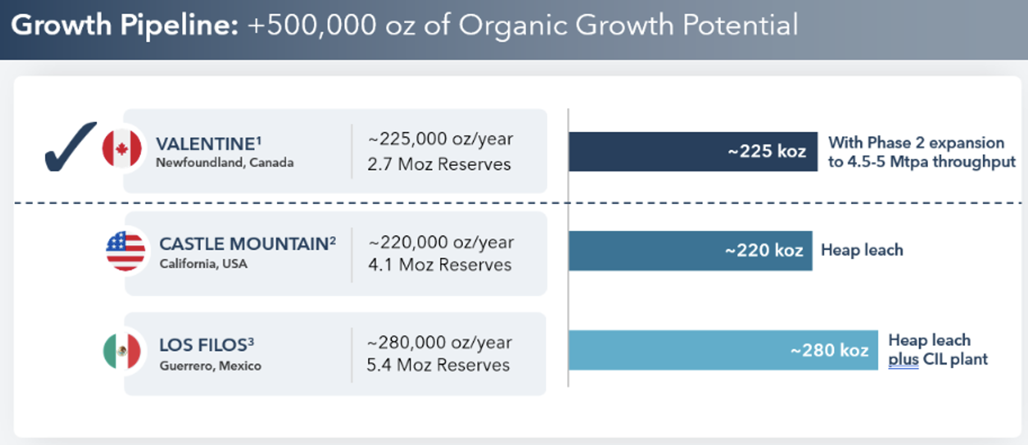 Am 30. März gab das Unternehmen die Ergebnisse eines technischen Berichts zur "Phase-2'-Erweiterung bekannt. Mit Kapitalkosten von 414 Millionen Dollar plant das Unternehmen, den Durchsatz von 2,5 Millionen Tonnen pro Jahr auf 4,5 bis 5,0 Millionen Tonnen pro Jahr zu steigern, was die Produktion in den nächsten zehn Jahren voraussichtlich auf durchschnittlich 223.000 Unzen bei durchschnittlichen Cash-Kosten von 1.580,- USD pro Unze und "All-in-Sustaining'-Kosten von 1.665,- USD pro Unze erhöhen dürfte. Diese Ergebnisse, gepaart mit dem Explorationspotenzial, zeigen, dass Valentine ein Eckpfeiler des kanadischen Portfolios des Unternehmens ist, der in der Lage ist, ein nachhaltiges Wachstum weit über den aktuellen Abbauplan hinaus zu liefern.