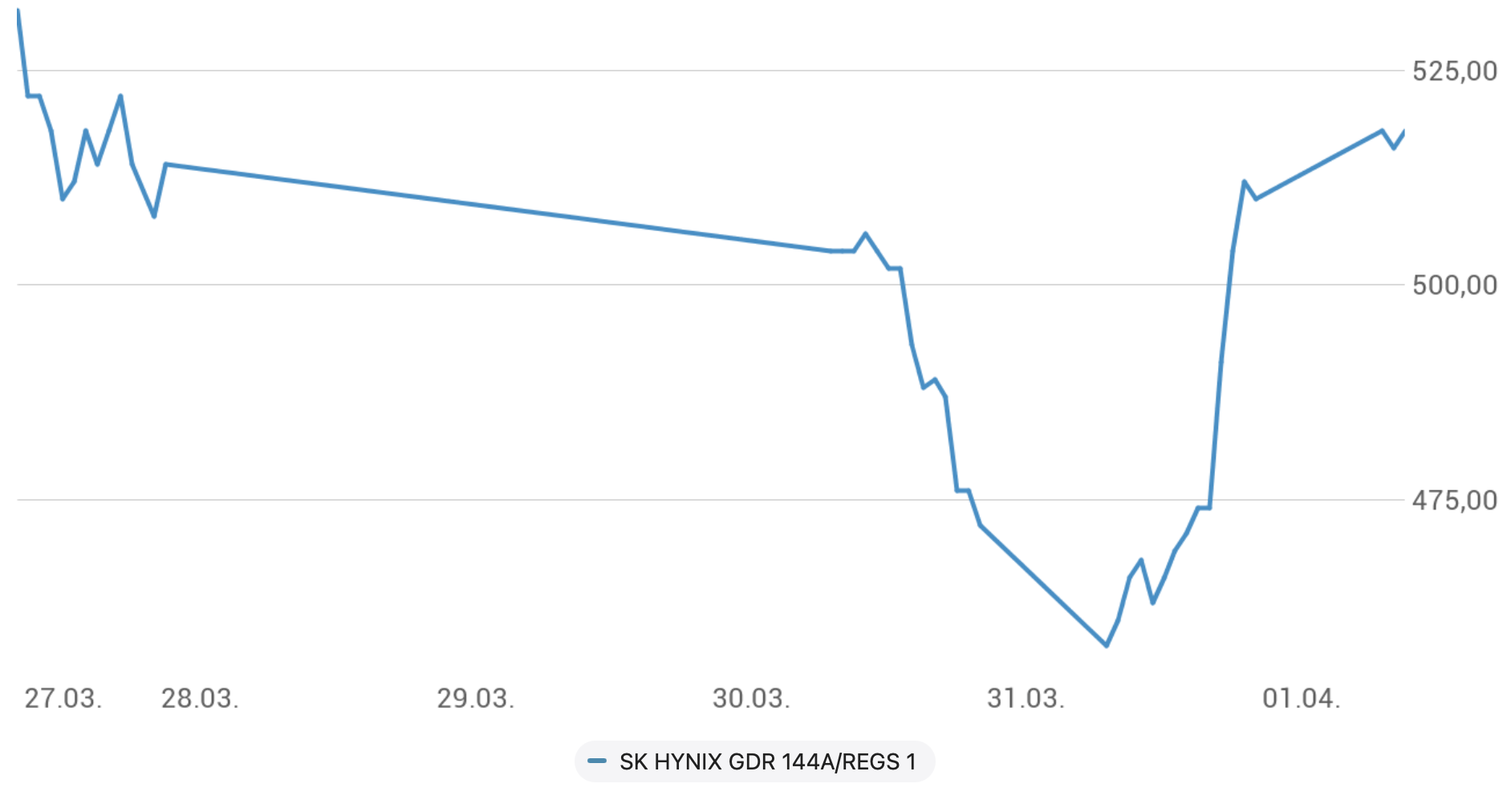 Auf die Ankündigung folgte eine massive Kaufwelle, die die Indizes an der Wall Street kräftig anschob. Die plötzliche Nachfrage, traf auf ein ausgetrocknetes Angebot. Unterm Strich legte der DOW Jones 2,5%, der S&P500 rund 3% und der NASDAQ100 sogar 3,5% zu. Die asiatischen Märkte folgten den US- Vorgaben heute Nacht und legten im Schnitt um rund 2 % zu. Den Vogel schoss dabei der südkoreanische KOSPI mit +8,5% ab, das befeuerte auch unseren Empfehlungslisten-Wert SK Hynix (Chart unten).