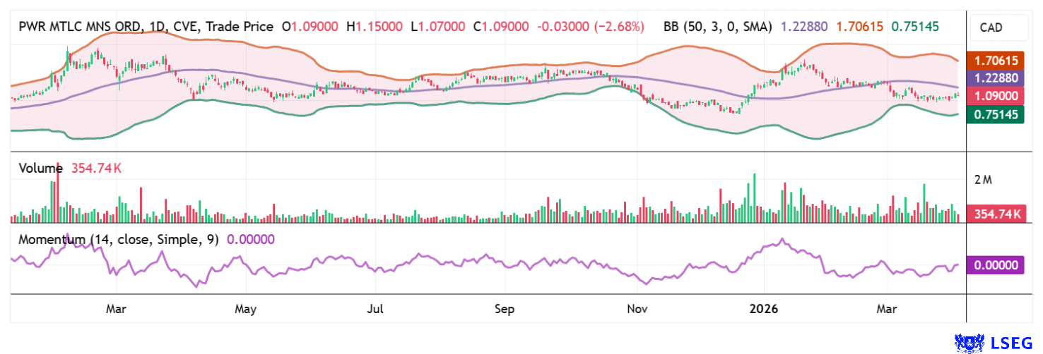 Der Chart von Power Metallic Mines zeigt eine breite Konsolidierungsformation. Wann gewinnen die Bullen wieder die Oberhand?