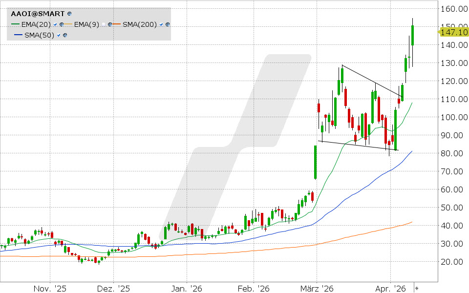 Die Aktie von Applied Optoelectronics steht seit einiger Zeit stärker im Fokus vieler Marktteilnehmer. Der Kursverlauf zeigt zuletzt eine auffällige Dynamik.Den vollständigen Artikel lesen ...© 2026 LYNX-Werbemitteilung - Bitte beachten Sie den Haftungsausschluss