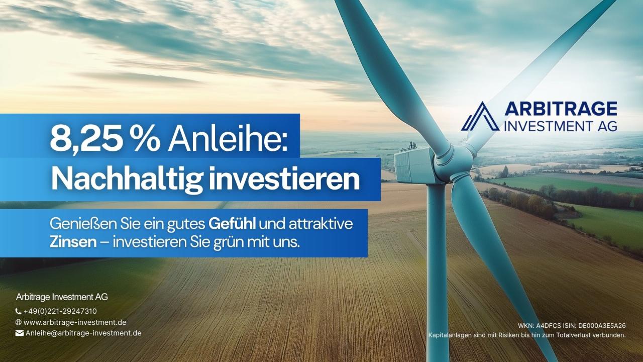 Risikohinweis: Bei dieser Anleihe handelt es sich um ein Wertpapier. Anleger tragen ein Emittentenrisiko. Die Anlageentscheidung sollte auf Grundlage des Wertpapierprospekts getroffen werden. Dieser ist unter arbitrage-investment.de abrufbar.