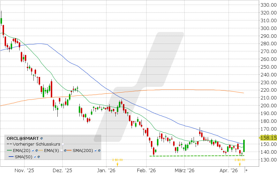 Oracle zeigt sich nach einer längeren Schwächephase wieder etwas stabiler. Im Chart rücken damit einige technische Marken stärker in den Fokus.Den vollständigen Artikel lesen ...© 2026 LYNX-Werbemitteilung - Bitte beachten Sie den Haftungsausschluss