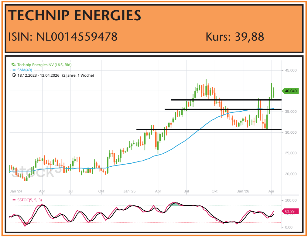 Im europäischen Energie-Service-Sektor ist ein Blick auf TECHNIP ENERGIES in Anbetracht des Irankonflikts angebracht. Hier ändert sich die Rechnung mittelfristig zum Positiven. Die kumulierten Wiederaufbaukosten belaufen sich geschätzt auf 20 bis 30 Mrd. $. Konkret: