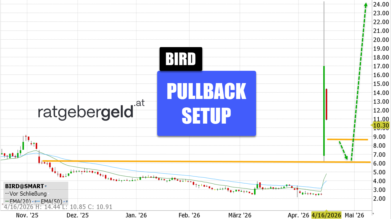 Im laufenden Monat vollzog Allbirds eine bemerkenswert abrupte Kehrtwende. Das Unternehmen kündigte an, sein gesamtes Schuhgeschäft inklusive Markenrechte für rund 39 Millionen USD an die American Exchange Group zu verkaufen und sich damit weitgehend aus dem operativen Modegeschäft zurückzuziehen. Hinter diesem Schritt stehen vor allem wirtschaftliche Probleme: Allbirds schrieb zuletzt weiterhin Verluste und kämpfte mit rückläufigen Umsätzen sowie einer insgesamt schwachen Nachfrage. Trotz früherer Wachstumsambitionen gelang es dem Unternehmen nicht, nachhaltig profitabel zu werden, wodurch der Druck zu einer grundlegenden Neuausrichtung deutlich zunahm. Künftig will sich Allbirds als Anbieter von KI-Recheninfrastruktur positionieren. Geplant sind umfangreiche Investitionen in Rechenkapazitäten, insbesondere in leistungsstarke Grafikprozessoren (GPUs), die an Kunden vermietet werden sollen. Zur Finanzierung wurde eine Wandelfinanzierung über 50 Millionen USD mit einem institutionellen Investor vereinbart. Parallel dazu plant das Unternehmen die Umbenennung in "NewBird AI", um den radikalen Strategiewechsel auch formal zu unterstreichen. Die Risiken liegen auf der Hand, charttechnisch sieht es aber sehr interessant aus!