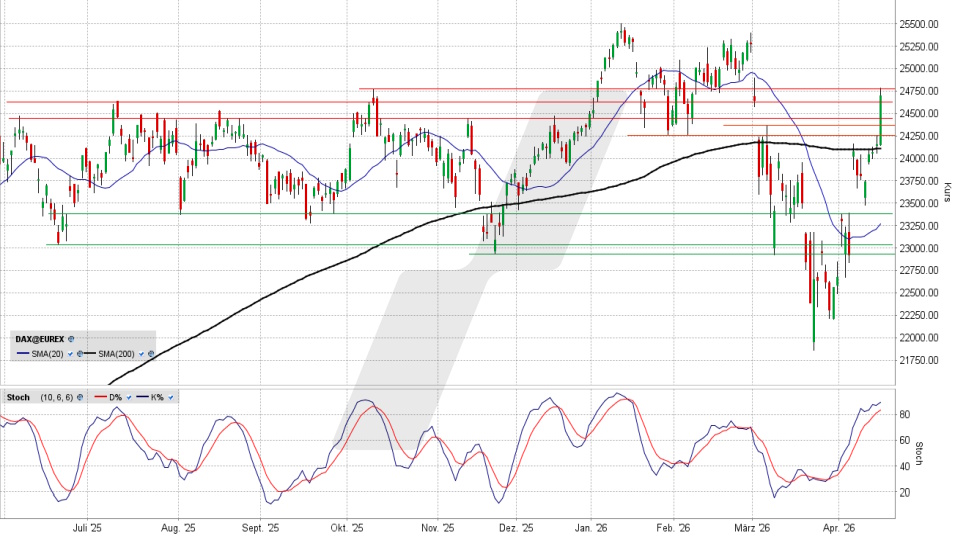 Der DAX hat nach dem starken Zugewinn des Freitags ein Kurslevel erreicht, auf dem ein weiterer, starker Tag den Weg aus charttechnischer Sicht an und idealerweise über das Rekordhoch freigeben würde. Kann das wirklich klappen - oder droht eine Bullenfalle?Den vollständigen Artikel lesen ...© 2026 LYNX-Werbemitteilung - Bitte beachten Sie den Haftungsausschluss