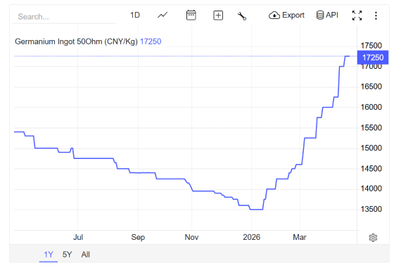 Germanium 1 Jahreschart. Quelle: tradingeconomics.com
