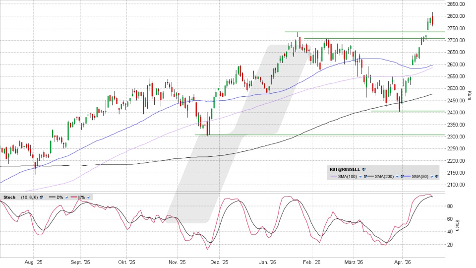 Nicht nur Nasdaq 100 und S&P 500 haben neue Rekordhochs erreicht, auch der US Small Cap-Index Russell 2000 ist nach oben ausgebrochen. Aber während man die Hochs bei S&P und Nasdaq als gewagt ansehen könnte, wirkt die Hausse dieses Index geradezu leichtsinnig.Den vollständigen Artikel lesen ...© 2026 LYNX-Werbemitteilung - Bitte beachten Sie den Haftungsausschluss