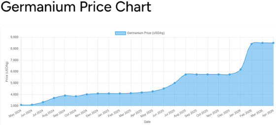 Germanium-Preisentwicklung: Mai 2024 - April 2026, Quelle: Unternehmensnews vom 22.April 2026