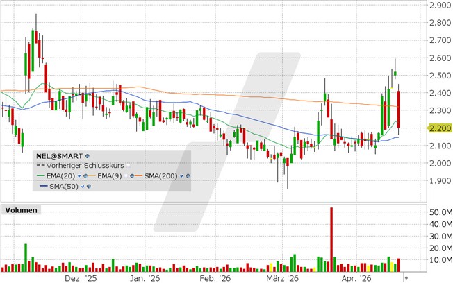 Nach dem kräftigen Rücksetzer rückt bei Nel ASA die Stabilität der jüngsten Aufwärtsstruktur wieder stärker in den Fokus. Im Zentrum steht nun, ob der Kurs die vorherigen Zwischentiefs verteidigen kann.Den vollständigen Artikel lesen ...© 2026 LYNX-Werbemitteilung - Bitte beachten Sie den Haftungsausschluss