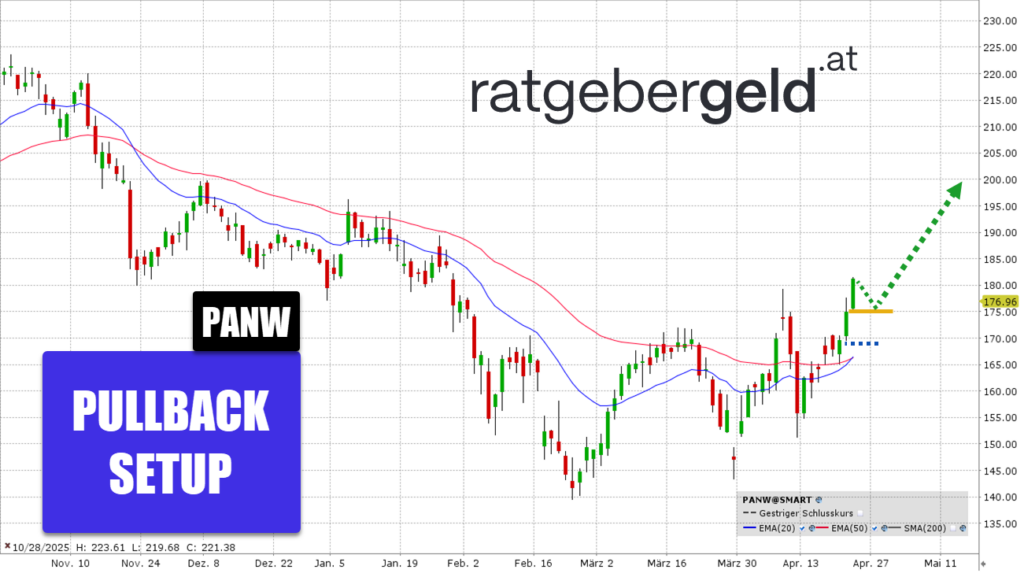 Palo Alto Networks ist ein führendes Unternehmen im Bereich Cybersicherheit. Nach einem deutlichen Abwärtstrend bis auf ein Tief bei rund 140 USD, hat die Aktie einen Boden gefunden. Zuletzt konnten die Bullen die Hürde bei 175 USD überwinden.