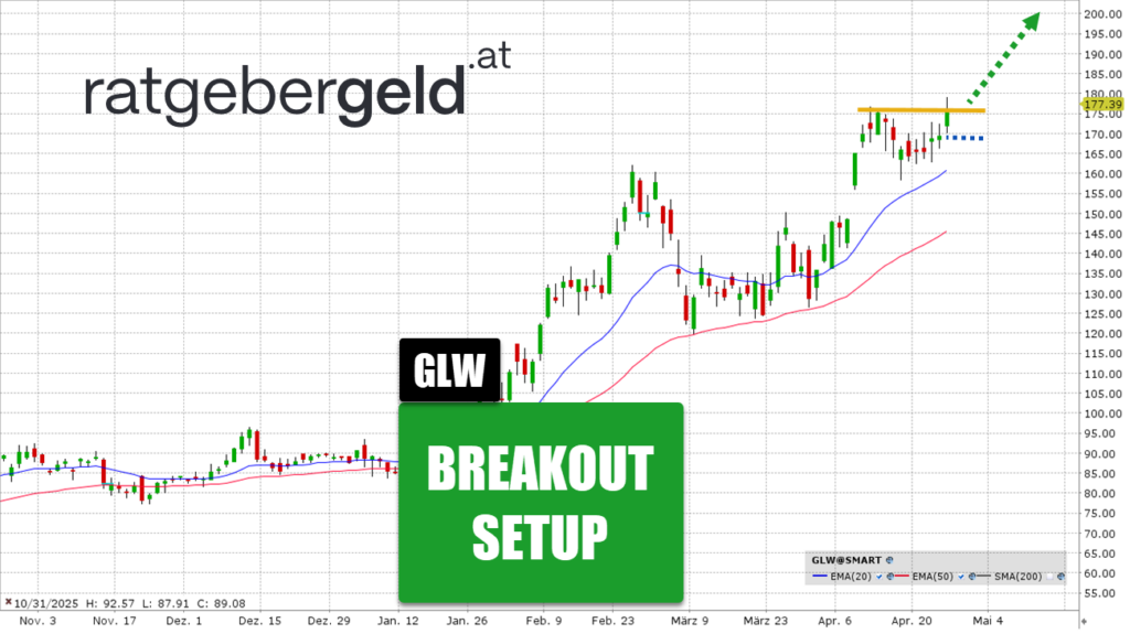 Bei 175 USD hat sich ein horizontaler Widerstand gebildet. Die Aktie hat diesen am Freitag überwunden und damit ein technisches Kaufsignal ausgelöst. Das Papier nutzt den 20-Tage-Durchschnitt als dynamische Unterstützung. Solange der Kurs darüber bleibt, ist das bullische Momentum intakt.