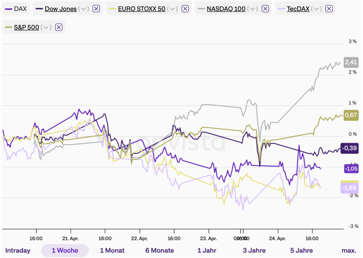 Die kommende Woche ist ein Schwergewicht: Q1-Earnings laufen auf Hochtouren und liefern die Beweise, ob die KI-Story weiter trägt. In den USA stehen Alphabet, Microsoft, Meta, Apple und Eli Lilly im Fokus. In Europa berichten Airbus, Air Liquide, AstraZeneca, TotalEnergies, UBS und Schneider - ein Mix, der von Industrie bis Energie fast alles abdeckt.