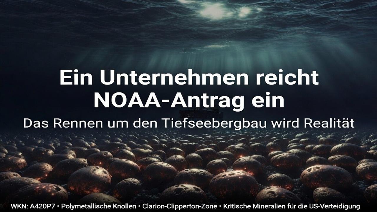 Deep Sea Minerals Corp. (WKN: A420P7) hat im Rahmen des Deep Seabed Hard Mineral Resources Act (DSHMRA) einen Antrag bei der NOAA eingereicht und strebt eine Explorationslizenz für polymetallische Knollen in der Clarion-Clipperton-Zone an.1 Der Antrag umfasst technische, ökologische und operative Informationen und beschreibt gestufte Aktivitäten, beginnend mit Datenerhebung und Umweltbewertung.Für ein Micro-Cap-Unternehmen mit einer Bewertung von etwa 40 Millionen CAD könnte diese Einreichung einen bedeutenden regulatorischen Meilenstein in einem der strategisch wichtigsten Rohstoffsektoren der Welt darstellen.