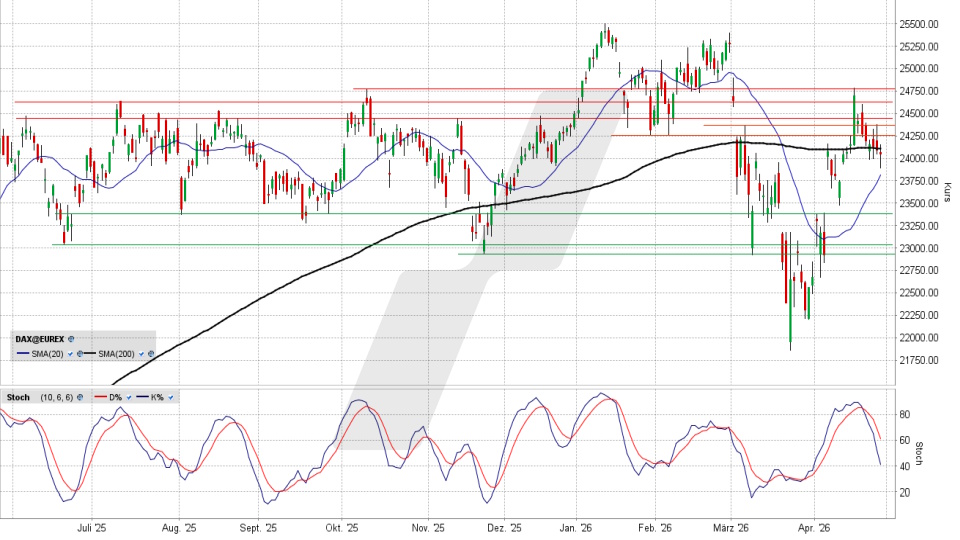 Am 17. April war die wichtige 200-Tage-Linie noch mit Schwung überboten worden, aber die Anschlusskäufe blieben aus. Jetzt notiert der DAX unter diesem gleitenden Durchschnitt ... aber nur leicht. Seit Tagen mäandert der Index um diese Linie - wie kann man das bewerten?Den vollständigen Artikel lesen ...© 2026 LYNX-Werbemitteilung - Bitte beachten Sie den Haftungsausschluss