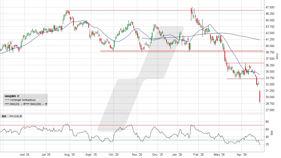 Am späten Montagabend legte Qiagen vorläufige Zahlen zum ersten Quartal vor, am gestrigen Dienstag fiel die Aktie daraufhin auf das tiefste Kursniveau seit Herbst 2019. Da die 2026er-Prognose gesenkt wurde, wirkte das auf den ersten Blick logisch. Aber auf den zweiten auch?Den vollständigen Artikel lesen ...© 2026 LYNX-Werbemitteilung - Bitte beachten Sie den Haftungsausschluss