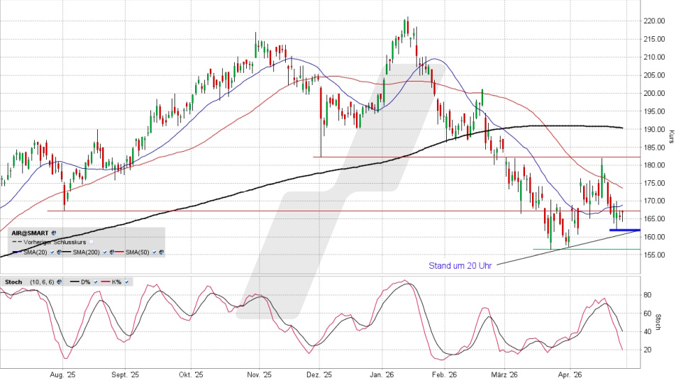 Der Flugzeughersteller Airbus meldete am Dienstagabend nach dem europäischen Handelsende das Ergebnis des ersten Quartals 2026. Umsatz und EBIT blieben hinter den Analystenschätzungen zurück ... aber wird das wirklich heute zu einem Abverkauf führen?Den vollständigen Artikel lesen ...© 2026 LYNX-Werbemitteilung - Bitte beachten Sie den Haftungsausschluss