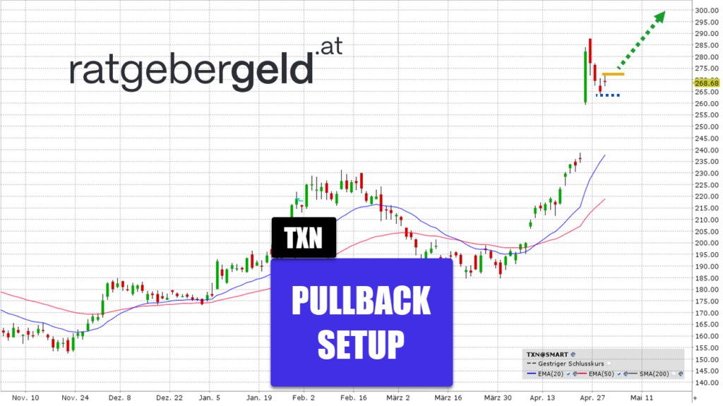 Texas Instruments hat kürzlich Quartalszahlen vorgelegt, die den Markt positiv überrascht haben. Besonders der Ausblick auf eine Erholung im Analog-Chip-Markt und die steigende Nachfrage aus dem Industriesektor haben die Bullen zurückgeholt. Texas gilt als defensiverer Wert im Halbleitersektor, da das Unternehmen eine breite Kundenbasis hat und für seine aktionärsfreundliche Politik (Dividenden und Rückkäufe) bekannt ist. Das aktuelle Muster ist für Trader interessant, die auf eine Trendfortsetzung setzen.